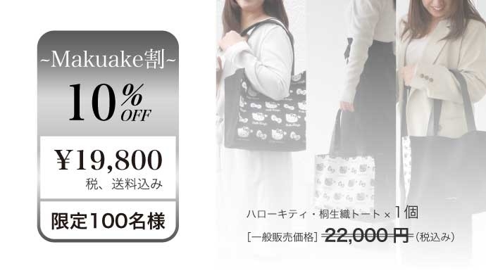 好評いただいているハローキティ・桐生織トート、一般販売前の特別価格で購入できるチャンスは残りわずかとなりました。