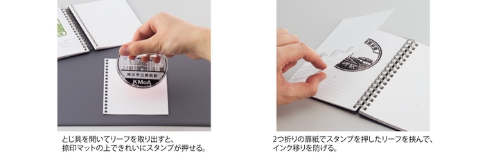 インクが裏抜けしにくい厚めの紙を使用したスタンプ押印用リーフ。