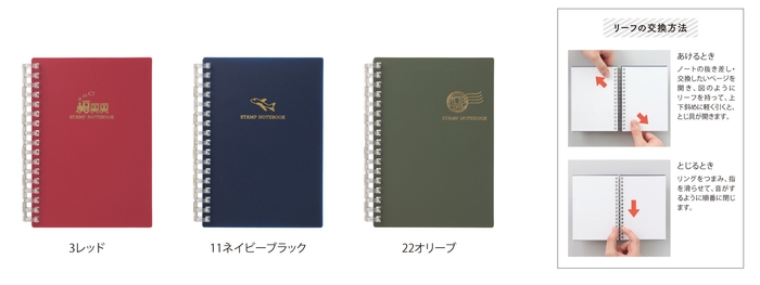 差し替えできない製本タイプのスタンプ帳は市場に数多くある中、「スタンプノート」はリーフの差し替え・交換を可能にするので、収集後の自由に並び替えという新しい楽しみ方・利便性をご提案します。