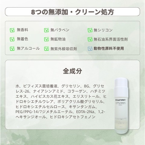 無色素・無香料・無鉱物油・無アルコール・無パラペン・無シリコン・無紫外線吸収剤・無石油系界面活性剤・動物性原料不使用