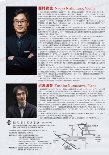『西村尚也 ヴァイオリン・リサイタル』が2026年7月27日(月)にMUSICASA(東京都渋谷区西原3丁目33−1)にて開催されます。