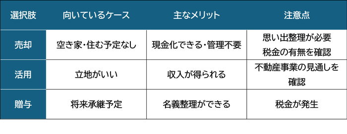 3. 親の不動産の選択肢は大きく3つ