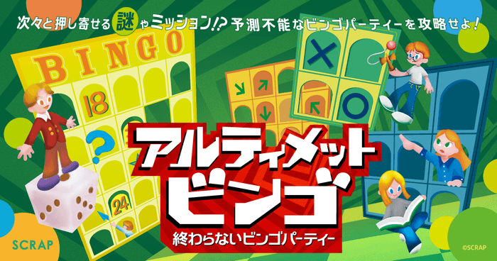 全世界で累計1,700万人以上を動員しているリアル脱出ゲームを企画制作する株式会社SCRAP(本社:東京都渋谷区、代表:加藤隆生)は、新作イベント『アルティメットビンゴ~終わらないビンゴパーティー~』を、2026年5月28日(木)より、リアル脱出ゲーム吉祥寺店を皮切りに全国で開催します。
