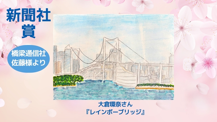 「新聞社賞」は、『レインボーブリッジ』を描いた大倉環奈さん(小学6年生)が受賞しました。本賞は、橋梁通信社様のご協力により選出されたものです。