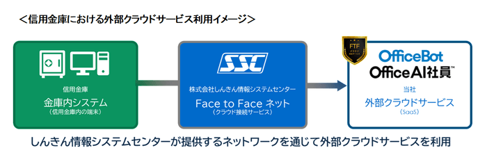 機密情報を取り扱う信用金庫では、外部クラウドサービスの利用において高度なセキュリティ対策が不可欠です。そのため、金庫内システムから安全に外部クラウドサービスへ接続できる仕組みとして、しんきん情報システムセンターが提供する「Face To Faceネット(クラウド接続サービス)」が広く活用されています。