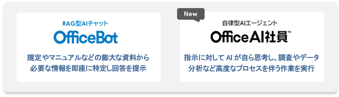 今回の対応により、信用金庫内で日常的に利用する業務PCから、用途に合わせて2つのAIを柔軟に使い分けることが可能になります。【OfficeBot】による効率的なナレッジ活用と、【OfficeAI社員】による高度な作業の自動化を組み合わせることにより、信用金庫における業務効率化及び生産性の向上を一層強力に支援してまいります。