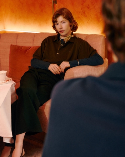 LACOSTEの定番モデル「L.12.12ポロシャツ」をベースに、快適な着心地と程よい抜け感を兼ね備えたボックスシルエットで別注。ネックラインをやや深めに設定し、襟はコンパクトなサイズ感に調整。さらに胸元のワニロゴをボディと同色に統一することで、女性らしく上品な印象に仕上げています。裾のデザインには前後差のあるドロップテイルを採用。ボトムスとのバランスが取りやすく、タックイン・アウトいずれのスタイルにも美しく決まる一着に仕上がりました。