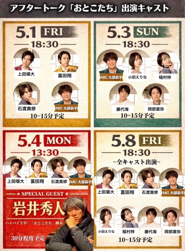 登壇キャスト等の詳細は公演公式HP(https://ofcha.biz/otokotachi)をご確認ください。