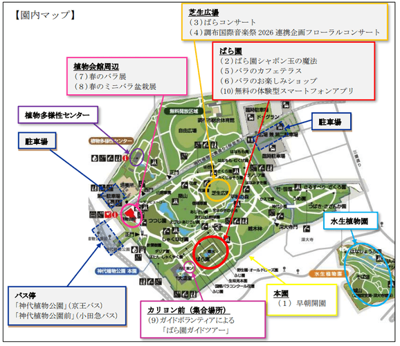 ※「春のバラフェスタ」開催期間中は混雑が予想されます。公共交通機関をご利用ください。