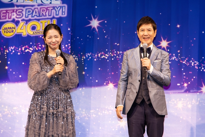 さらに、勤さんは、ディズニー・オン・アイスの魅力を「キャストのスケーティングの技術もすばらしいです。物語とスケートのスピードが融合して、スピーディーに展開していく。『そうだ、こんな物語だったな』と思い出しながら感動できるのもすばらしいです」と話すと、麻里さんも笑顔で同意。