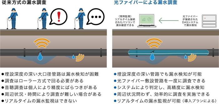 横浜市水道局のフィールド提供において光ファイバーによって水道管の漏水箇所を特定