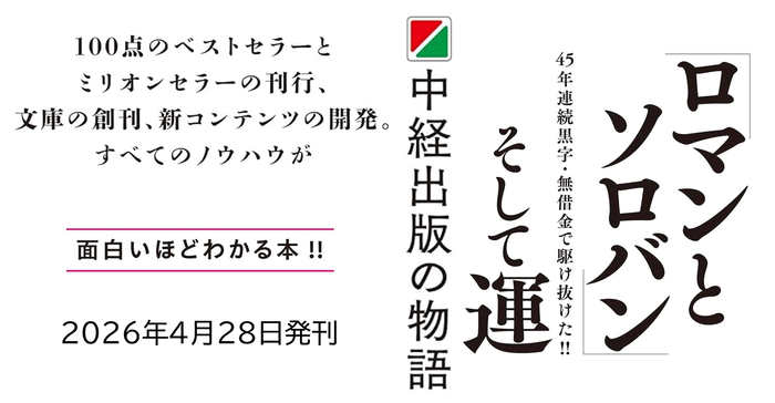 株式会社あさ出版(代表取締役:田賀井弘毅、所在地:東京都豊島区)は会社の物語制作委員会 著『ロマンとソロバンそして運ー中経出版の物語』https://www.asa21.com/book/b673743.html を2026年4月28日(火)に刊行いたします。