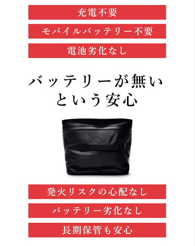 これにより、電源確保がより安全かつ簡単に、圧縮ケース本来の目的である高い圧縮率も保持した革新的なバッグが完成致しました。