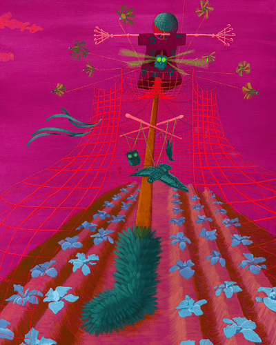 日常の中にひっそりと佇む珍百景、困り事を非効率的に解決するために生み出された無駄な発明品などの、知らない既知に出会ったときのようなワクワクを味わえることを目標にしながら絵画や立体作品(オリジナルの無駄発明)を制作している。