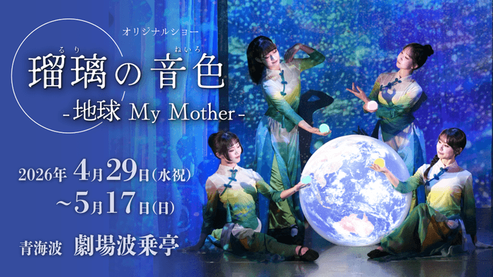 本作『瑠璃の音色~地球My Mother~』は、水、光、大地など自然が育んだ音が、人々の祈りや暮らし、文化と結びつき、やがて音楽や舞踊へと昇華していく壮大な物語を描くレビューショー(※)。アジア、ヨーロッパ、アフリカ、南米、そして新大陸アメリカへと舞台を巡りながら、世界各国の音楽や舞踊で観客の皆さまを“音楽で旅する世界旅行”へと誘います。