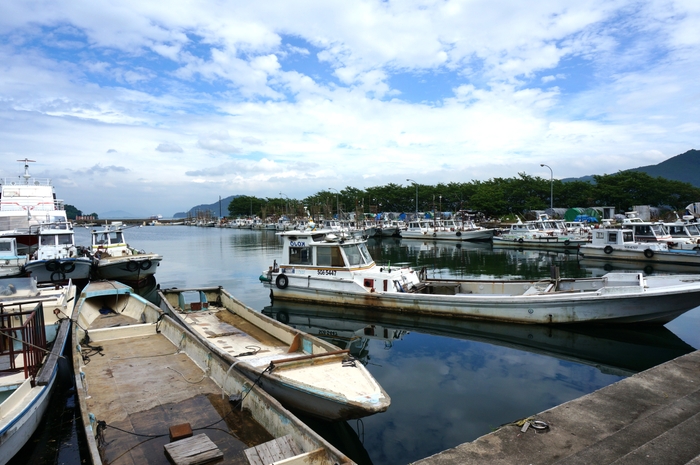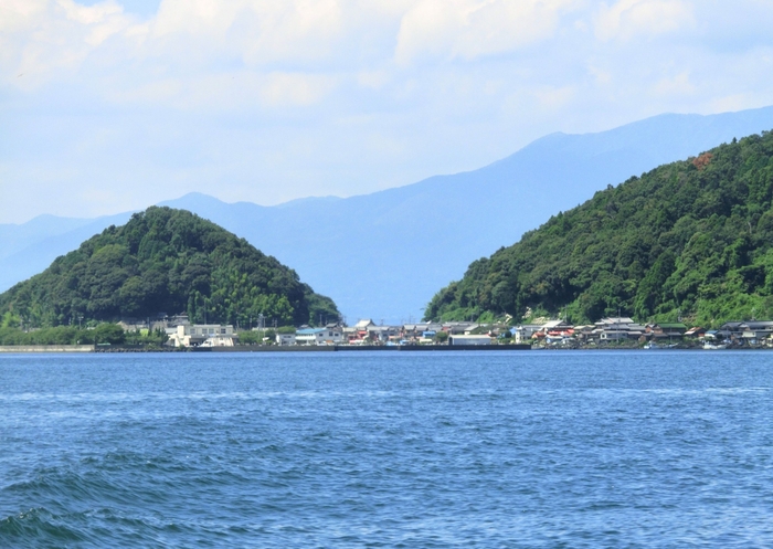 近江八幡市から琵琶湖の沖合約1.5㎞に浮かぶ沖島は、びわ湖最大の島(周囲約6.8㎞、面積約1.53 ㎢)で、湖で人が暮らす日本唯一の島です。沖島の歴史は古く、昔は神の島として崇拝される無人島でした。その後、保元・平治の乱に敗れた源氏の落武者が島を開拓し、定住したのが島の始まりと伝えられています。現在、約230人が暮らしており、そのうち約7割の方が漁業に従事しています。