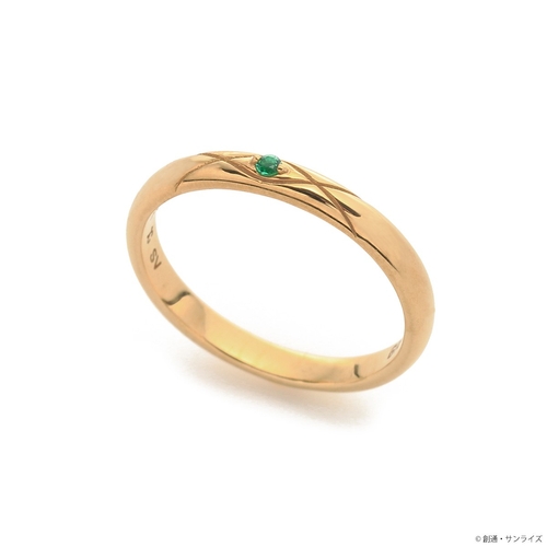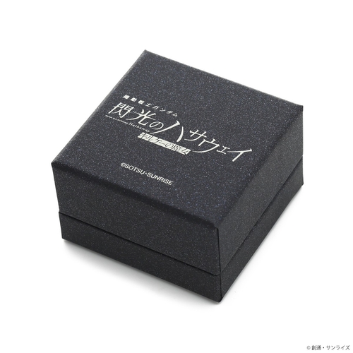 パイロットスーツをモチーフに取り込んだV字デザインに、イメージカラーストーンをセット。内側にはΞ(クスィー)ガンダムマークと名前の刻印を施しました。