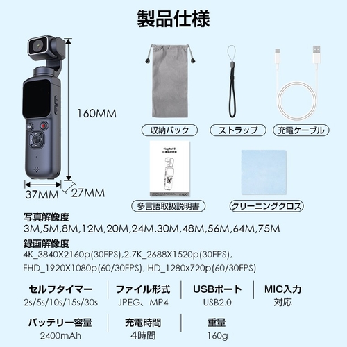 【楽天市場】P5倍【一年保証・自動顔追尾雲台(左右330°上下180°)・美顔】vlogカメラ HJD05ポケットカメラ 7500万画素 4K録画 トイカメラ 1.7インチ画面 2400mAh大容量バッテリー 自撮り 4倍ズーム 電子手ブレ補正 直感タッチ操作 Wi-Fi コンパクト 軽量 フィルター 初心者卒業修学旅行:スマホサービス : https://item.rakuten.co.jp/smahoservice/y302104/