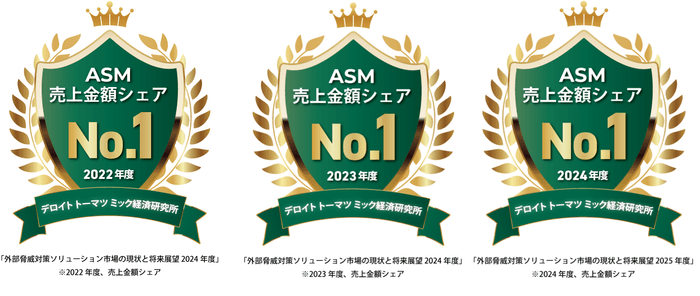 *1: デロイト トーマツ ミック経済研究所 市場調査レポート「外部脅威対策ソリューション市場の現状と将来展望 2025年度」(2026年3月発行)、ASM売上金額シェア第1位(2022年度、2023年度、2024年度、ASM売上金額シェア)
