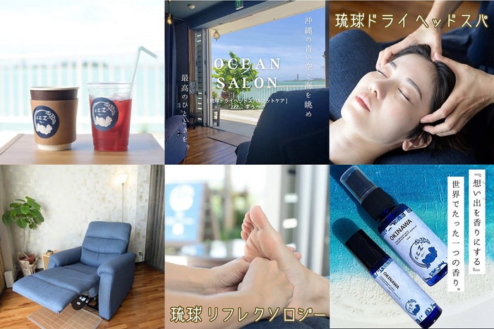 海と空、飛行機を眺めながら琉球マッサージを受けられるリラクゼーションサロンです。