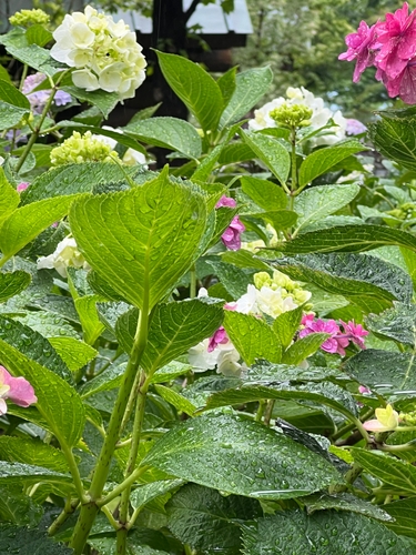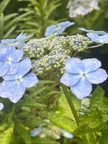 約100品種のあじさいが彩るガーデンでは、色や形の違いを見比べながら散策を楽しめます。