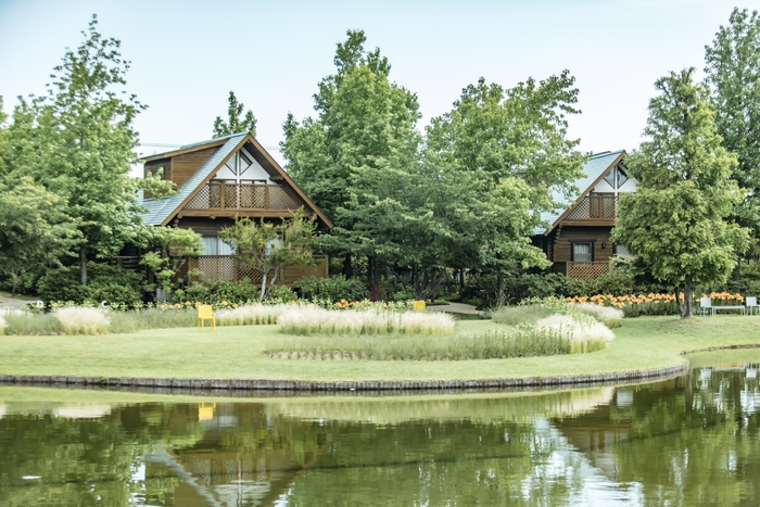 当ホテルは、自然と調和したガーデンを中心にログハウス・本館・新館ネストの3タイプ の客室を配し、ガーデンを望むレストランや焚き火リビング、全天候型BBQ場を備えています。