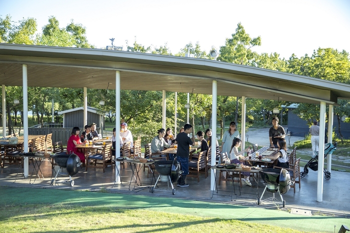 BBQエリアでは、森と潮風を感じながら、昼は開放的に、夜はやわらかな灯りに包まれて、時間帯ごとに異なる過ごし方を楽しめます。