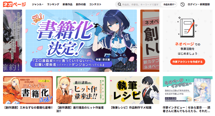 ネオページでは作品投稿も受け付けており、創作活動に挑戦したい方の参加も広く募集しています。