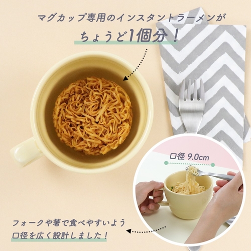 マグカップ専用のインスタントラーメンが一個分入る、ちょうどいいサイズ感です。