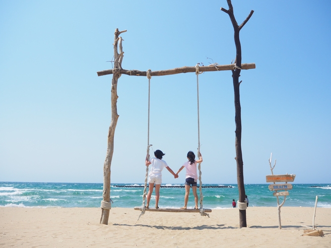 徒歩30秒の好立地!遠浅で安心な「浜詰夕日ヶ浦海水浴場」