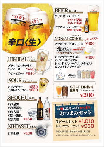 また、当店はうどんや丼ものなど、通常の「山小屋ラーメン」にはないメニューやアルコール類も含めたドリンクメニューも充実しており、幅広い年齢層のお客様にお食事を楽しんでいただけます。