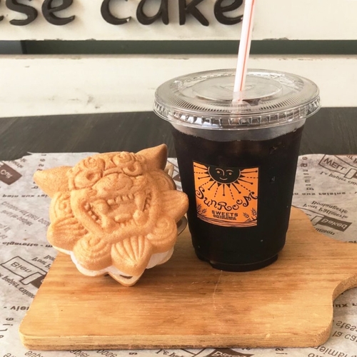 期間中はシーサー型のもなかで、冷凍のクリーム大福をサンドしたかわいらしい「冷え冷えシーサーモナカ大福」を提供します。