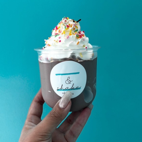暑い夏にぴったり!とろ~り濃厚チョコシェイクに、パリパリ食感が楽しいチョコスプレーをたっぷりトッピング!今だけ特別なチョコシェイクをどうぞ。