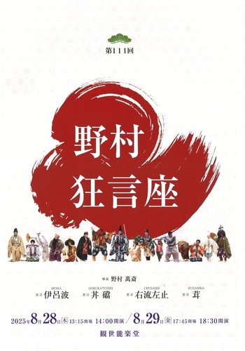 万作の会主催、『第111回 野村狂言座(東京)』が2025年8月28日(木)~8月29日(金)に観世能楽堂(東京都 中央区 銀座 6-10-1)にて上演されます。 チケットはカンフェティ(運営:ロングランプランニング株式会社、東京都新宿区、代表取締役:榑松 大剛)にて7/28(月)10:00一般販売開始です。