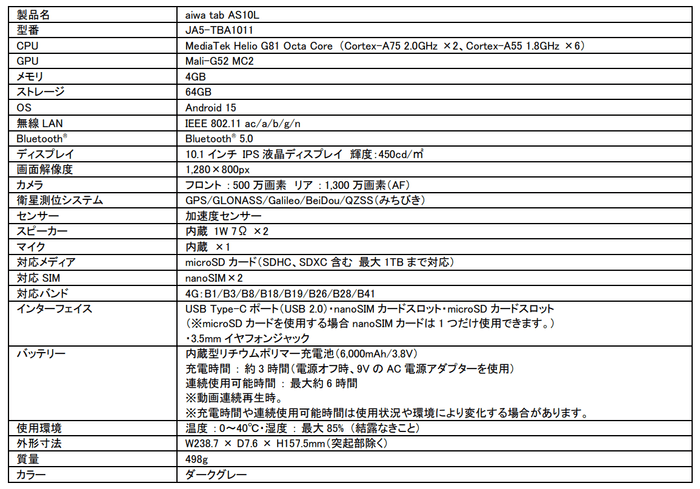 【aiwa tab AS10L】 : https://aiwa.net/products/aiwa-tab-as10l/