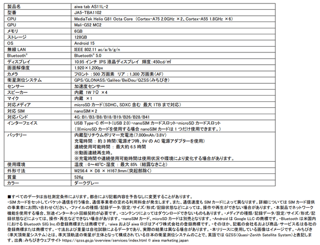 【aiwa tab AS11L-2】 : https://aiwa.net/products/aiwa-tab-as11l-2/