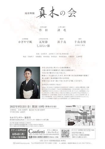 琉球舞踊 重踊流『琉球舞踊 真木の会』が2025年9月12日 (金)にセルリアンタワー能楽堂(東京都渋谷区桜丘町26-1)にて上演されます。