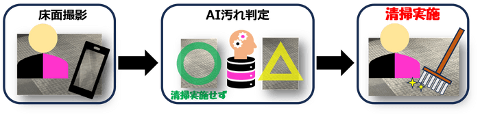②AI画像診断型CBMシステムの開発:スマートフォンで特定の床面を撮影すると、AIが熟練清掃員の「匠の目」と同等の精度で美観状態を判定するAI並びにシステムの開発