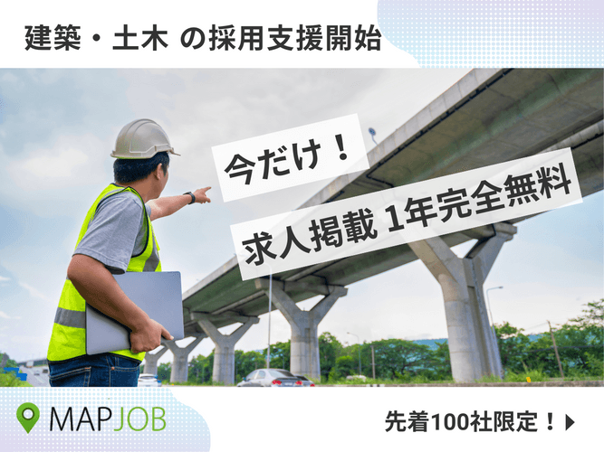 マイスター株式会社は、10月からの最低賃金引き上げに伴う企業の経済的負担増加に対応し、深刻な人材不足に悩む建築土木業界を支援するため、地図から探せる求人サイト「MAPJOB」への求人掲載を1年間完全無料で提供するキャンペーンを2025年10月より開始します。本キャンペーンは先着100社限定の特別企画となります。