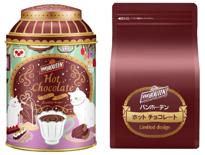 片岡物産株式会社(本社:東京都港区新橋)は、世界で愛されるココア ブランド <バンホーテン>から「ホット チョコレート 2025-2026 リミテッドデザイン缶(150g)」を、2025年10月21日(火)より数量限定で発売いたします。
