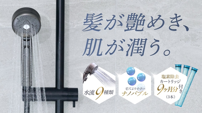 紫外線や冷房で乾燥しがちな髪や肌を、毛穴より小さなナノバブルがやさしく洗浄し、うるおいと温もりを届けてくれます。しっとり艶やかな美しさを取り戻し、浴びるたびに美容液に包まれるような美肌シャワー体験を提供します。さらに、男性が抱えがちな髪のボリューム、頭皮のかゆみ・べたつきなどのトラブルも、ナノバブルが毛穴の奥まで浸透することでケアすることができます。