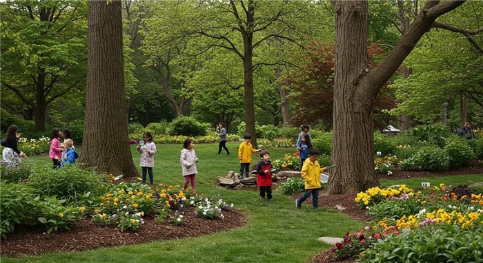子どもたちが公園内を自由に散策しながら、自分の「好きな音」を探し共有する体験プログラムです。