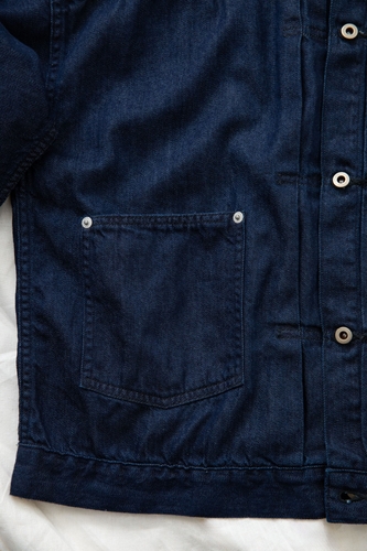 採用した生地は、トラッドな雰囲気の中にモダンな要素を取り入れたキュプラとウールをブレンドした8オンスデニム。