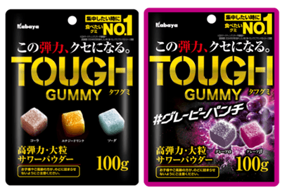 『タフグミ』ブランドは、最大の特長である噛み応えある“独自の高弾力食感”と、サワーパウダーによる刺激が引き出す“やみつき性”が支持され、累計販売個数は1億個を突破、主力製品の『タフグミ』は2024年度グミ市場販売金額No.1※1になるなど、成長著しいグミ界において2年連続で王者の座を獲得※2しました。