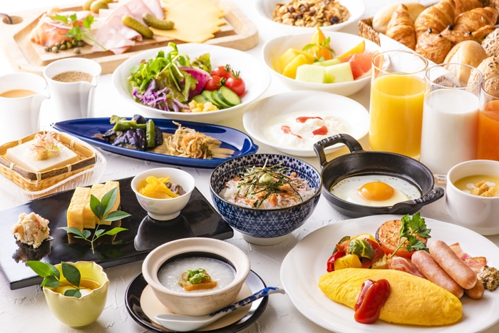 朝から元気にパワーチャージ。和食、洋食、キッズメニューなどを取り揃えたバラエティ豊かな朝食を、ビュッフェスタイルでお楽しみいただけます。