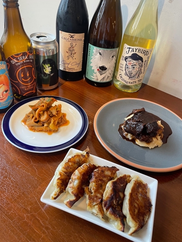 可愛いラベルのクラフト酒と、創作料理で語らう夜。