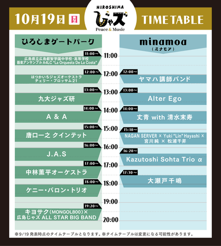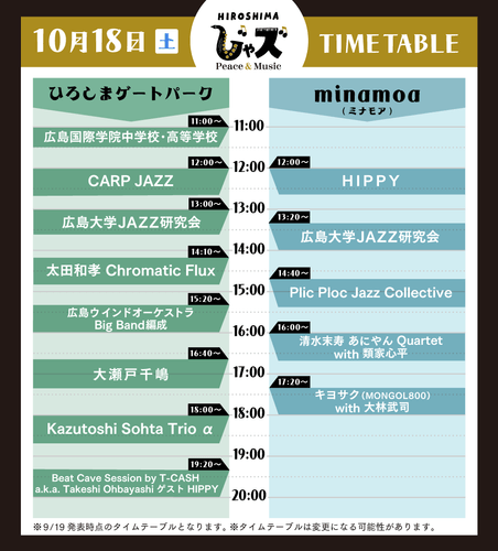 【広島じゃズ】全出演者決定!本日タイムテーブルを公開! | NEWSCAST : https://newscast.jp/news/2150570