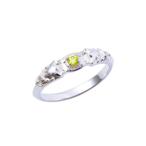 三好の指環(弓)は洗練されたシルバーカラーを施したカレッジリング風の型に、イメージカラーストーンを配した上品なデザインです。
