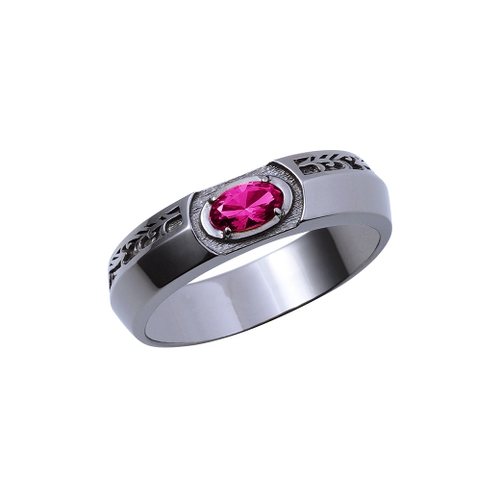 若山の指環(刃)は上品なブラックコーティングを施したナイフエッジの型に、オーバルカットのイメージカラーストーンを配しました。存在感がひき立つデザインです。