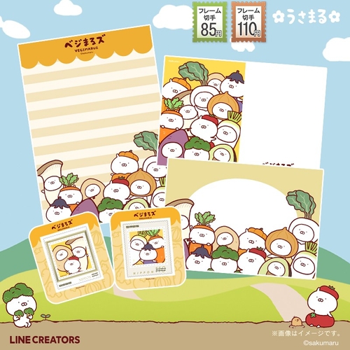 うさまるの人気デザイン『ベジまるズ』によるフレーム切手が登場!